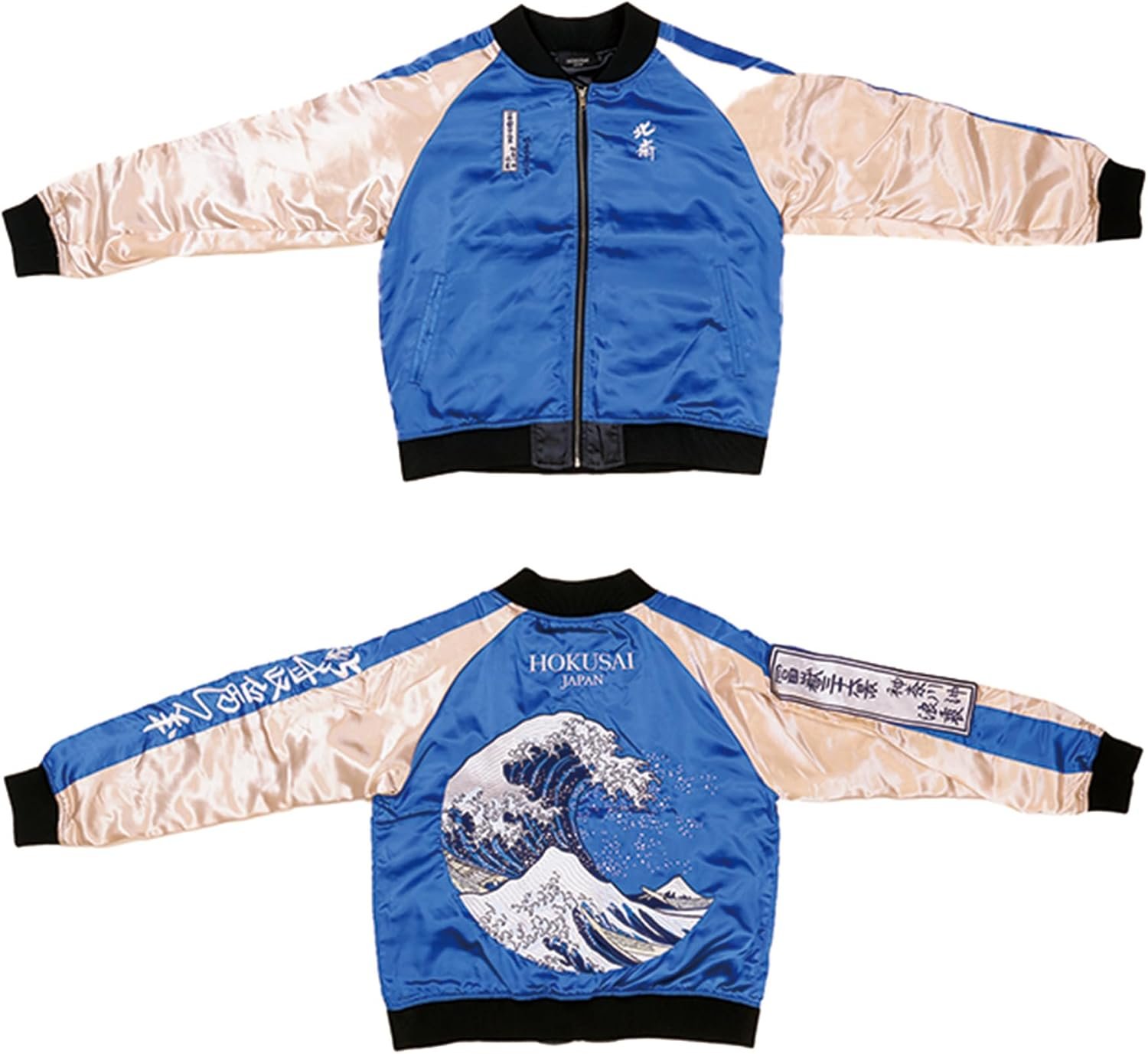 Chaqueta Sukajan (Tamaño 3L) con Bordado Completo de “La Gran Ola de Kanagawa” de Katsushika Hokusai