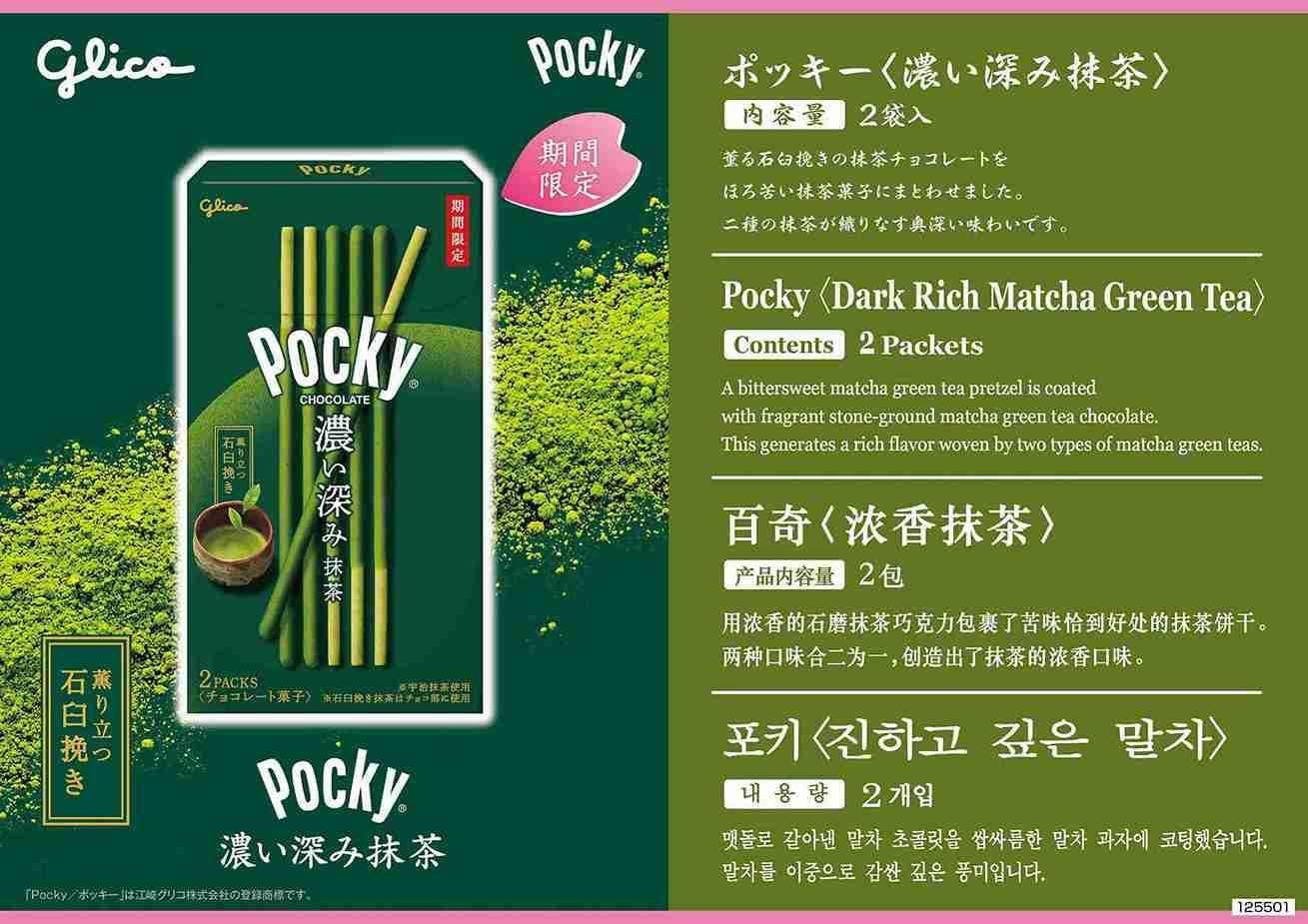 “La parte de chocolate utiliza matcha molido en piedra con un aroma y sabor fuertes, mientras que la parte de galleta utiliza un matcha ligeramente amargo, creando un Pocky totalmente dedicado al matcha. Tanto el chocolate como el pretzel están hechos con ‘matcha Uji’. Pocky continuará ofreciendo sorpresas frescas y diversión como un ‘snack de chocolate que nos hace sentir felices al compartirlo