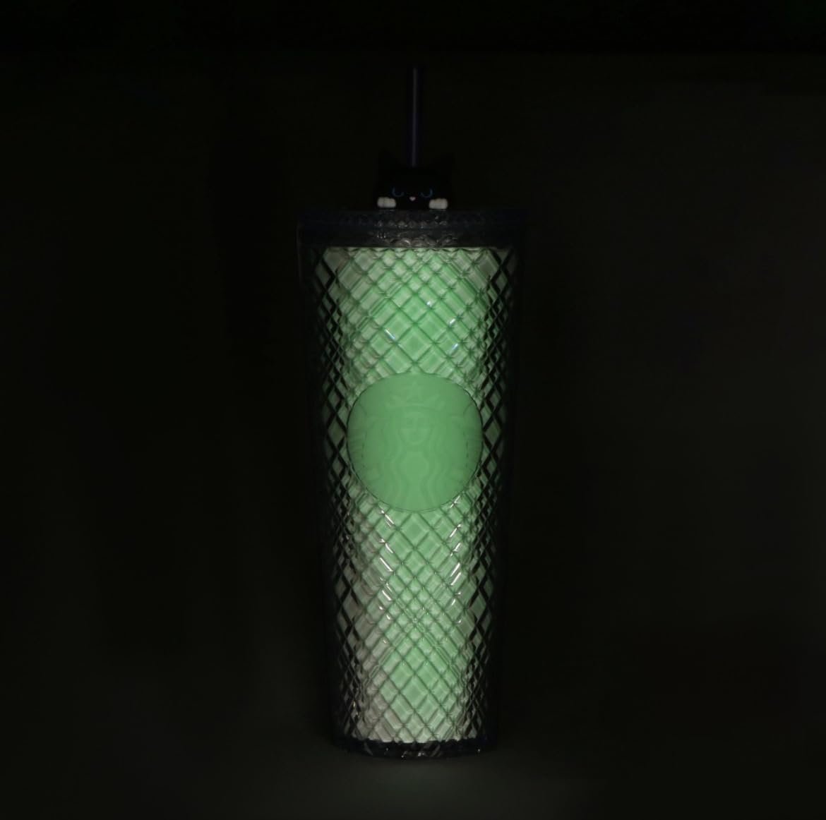 STARBUCKS Starbucks Halloween 2025 Taza de plástico con logo, Gira en la oscuridad, 710 ml, Gato, Taza, Copa fría, Luminoso en la oscuridad