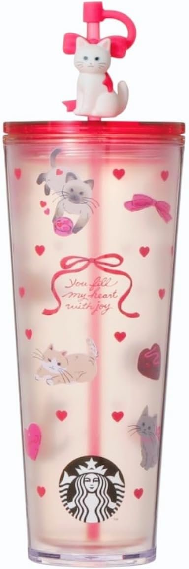 STARBUCKS Starbucks Válentines 2026 Taza de plástico con tapa de gato de 710 ml