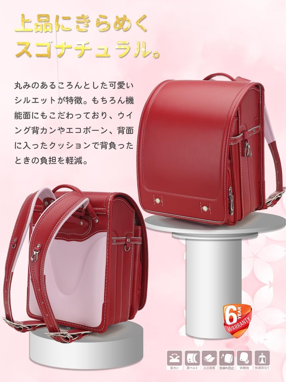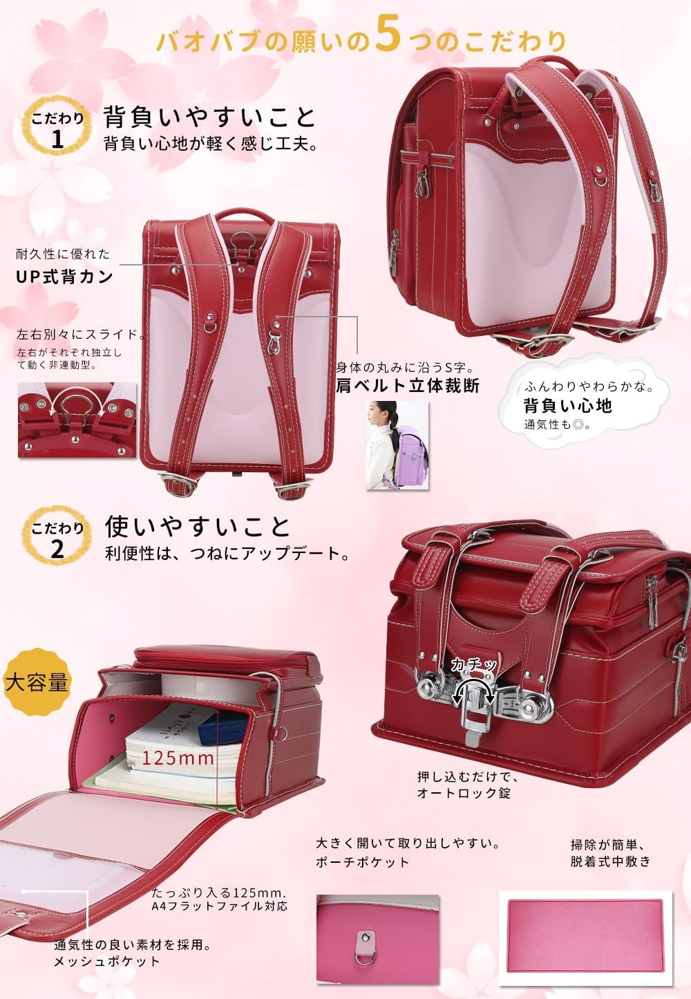 Mochila Escolar Baobab no Negai – Diseño Ligero, Resistente al Agua, con Gran Capacidad (Rojo)