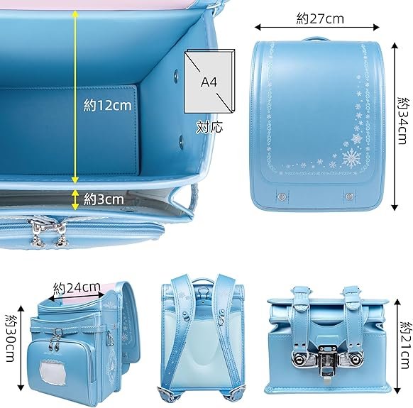 Margelaランドセル,雪の結晶、プリンセスクラウンとマジックミラーのテーマ、お姫様のような豪華な印象。反射プレス、銀色金物。